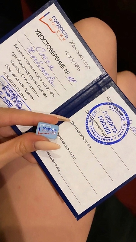 Клеблеевой присудили премию за «достижения в сферах малого и крупного бизнеса» и вручили диплом. Как говорится на странице победительницы, девушку также пригласили на премию ТОП-100 самых красивых девушек России.