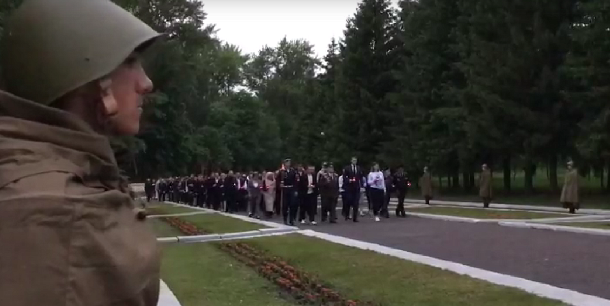 Торжественным шествием собравшиеся прошли к Вечному огню. К мемориалу павшим возложили цветы. Из зажжённых свечей выложили слова "Я помню".