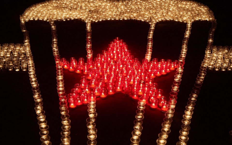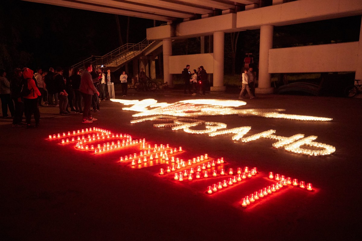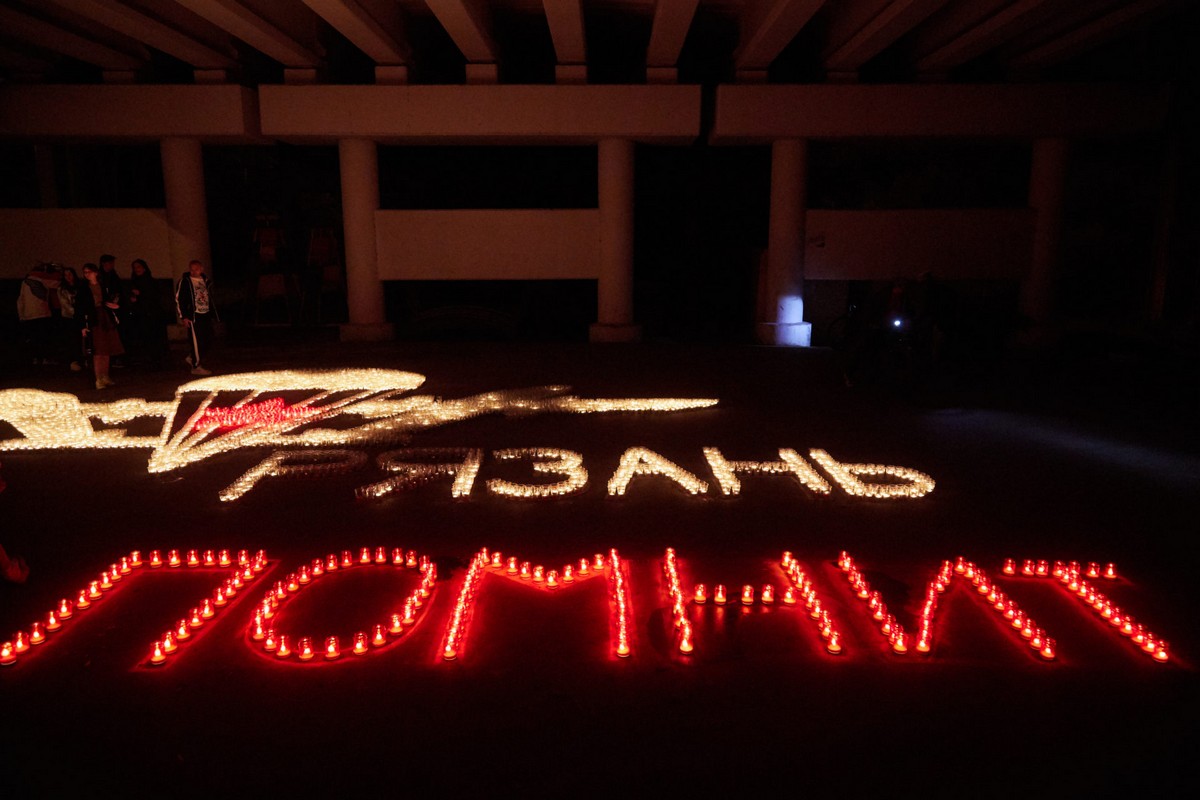 Зажжёнными свечами участники акции выложили символ ВДВ и слова "Рязань помнит". Размер надписи и изображений составил 10 на 12 метров.