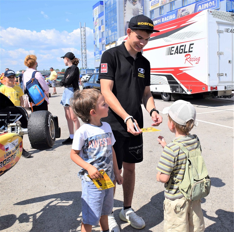 Школьники пообщались с пилотами команды LADA Sport ROSNEFT и взяли у именитых спортсменов автографы. Те рассказали ребятам, что представляет собой работа профессионального гонщика, что важнее всего при командных заездах.