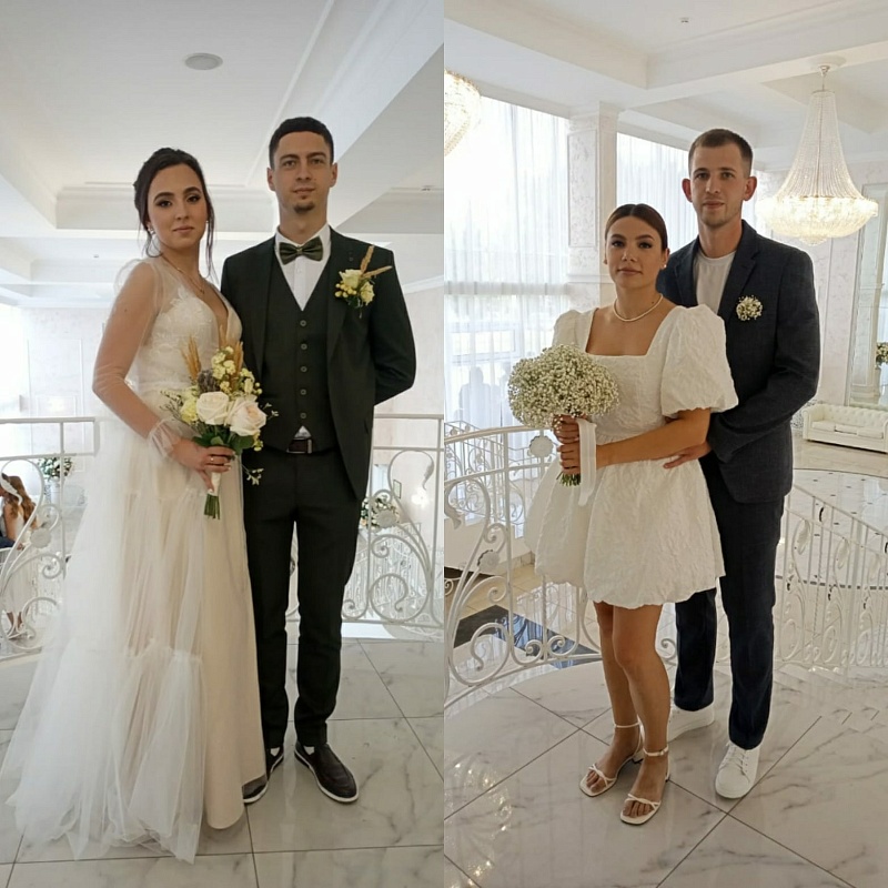 Август – традиционно популярное время для свадеб. В этом месяце браков в Рязанской области было заключено много. Невесты по-прежнему выбирают в основном классику – белый цвет и достаточно пышные длинные платья. Но есть и любительницы экспериментов – в основном это цветовые решения нарядов или аксессуаров.