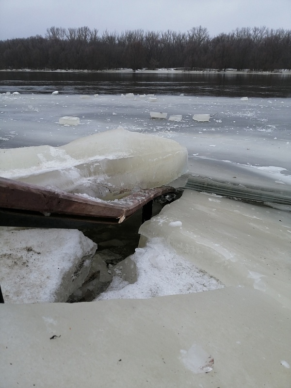 На пристани в рязанском Лесопарке под тяжестью льда погнулись металлические перила. Об этом сообщила очевидица в пятницу, 27 января.