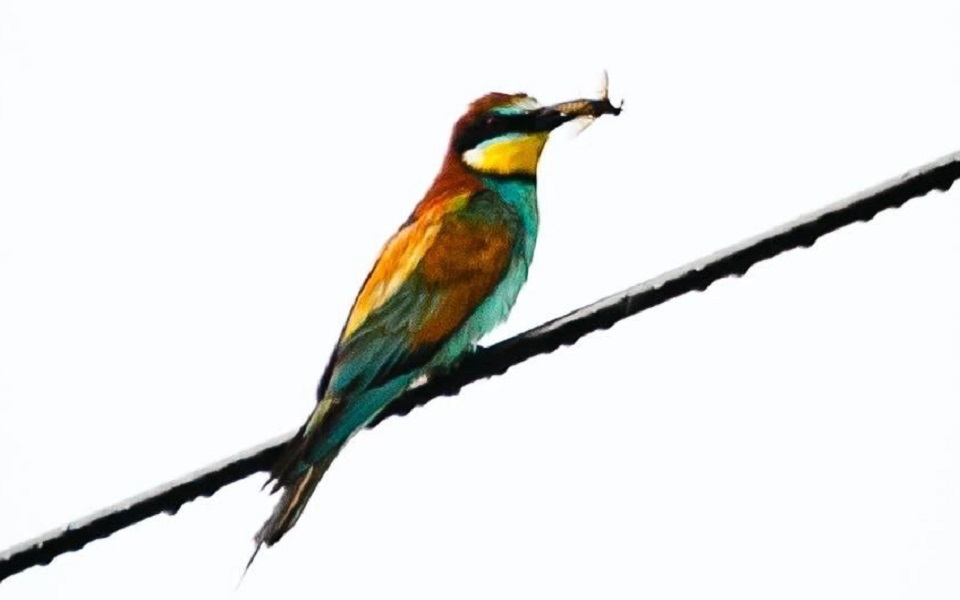 Птица сразу обращает на себя внимание ярким оперением – бирюзовой грудкой, ярко-желтой шейкой и пестрыми крыльями. Авторы фото отмечают, что такие виды обитают на территории Европы, можно встретить золотистую щурку также в Северной Америке и западной Азии. В этот раз фото удалось сделать в деревне Горки под Спасском.