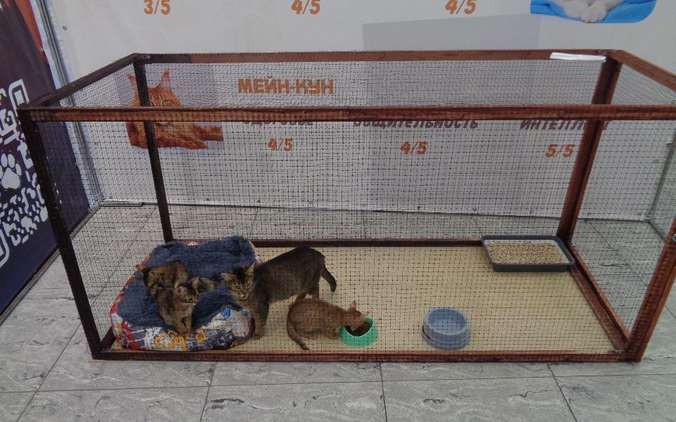 Выставку проводят ТЦ «Марко Молло» с 31 октября по 15 декабря. Это первое грубое нарушение: животных нельзя выставлять более 4 дней и более 12 часов в сутки. Выяснилось также, что кошки поступили на площадку с ветдокументами, но сопоставить их с реальными животным невозможно, так как нет информации об идентификации животных в описи ветеринарных сопроводительных документов.