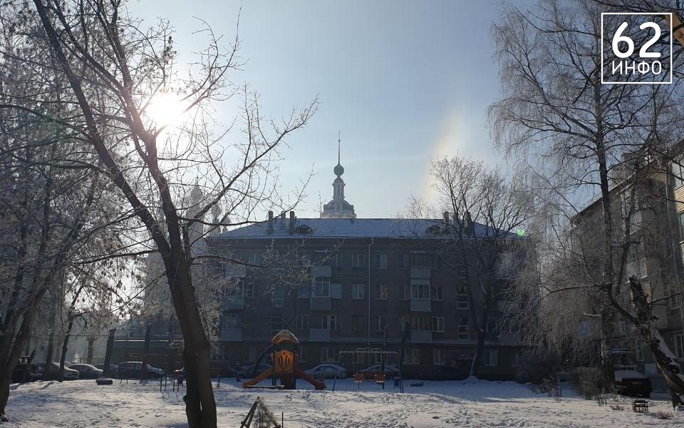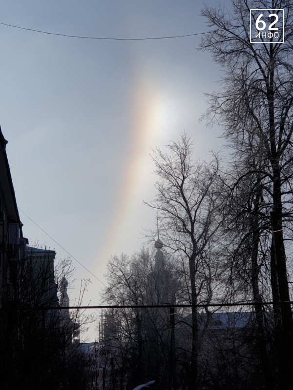 Над рязанскими улицами взошла радуга. Оптическое явление в зимнее время называется гало, так как радуга — это преломление лучей в капельках воды, а зимнее гало — в кристалликах льда.