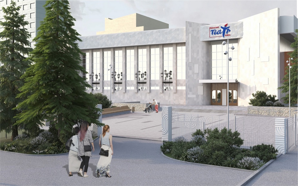 Проект начавшегося недавно благоустройства территории перед театром включает масштабное озеленение. Планируется посадить сосны, березы, калину, боярышник, сирень и др.