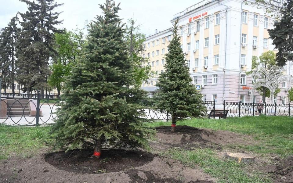 Так, на месте срубленных и больных деревьев на площади Ленина высадили новые и здоровые. Теперь у памятника Ленину приживаются несколько новых елей.