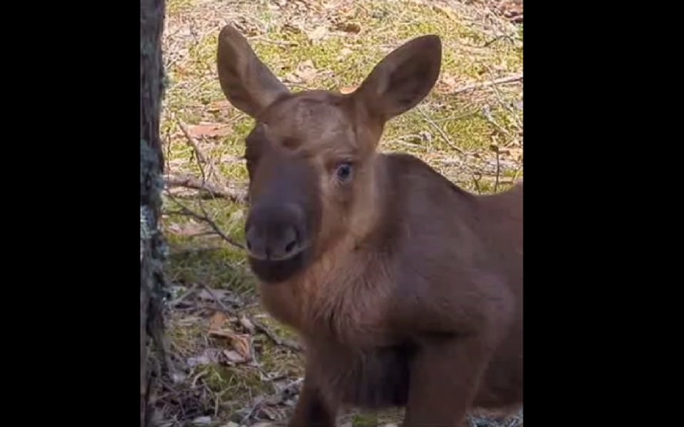 «Сегодня встретился неуклюжий, но очень милый телёнок. Лосиха была где-то рядом и рычала как медведь, пока не убедилась, что малыш в безопасности», – написал автор.