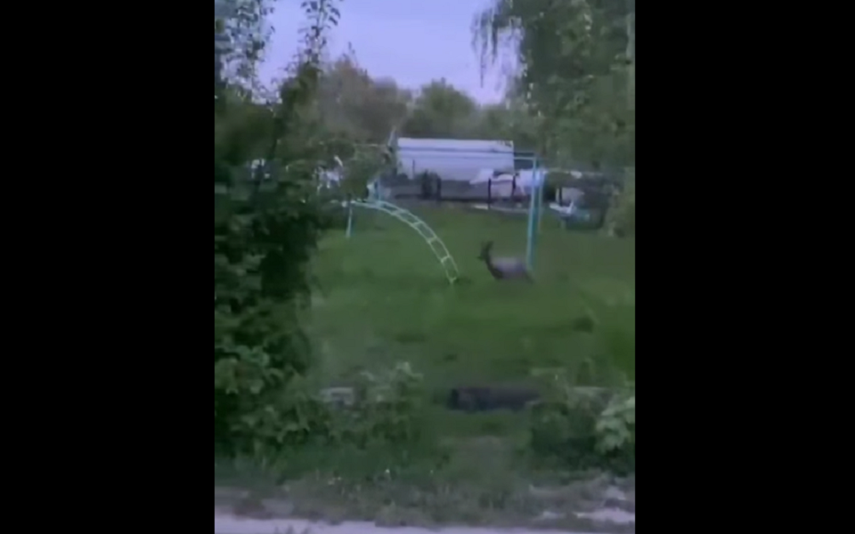 Животное пыталось пробраться к детскому саду, но помешал забор. После этого косуля решила скрыться - перебежала дорогу и направилась в березовую посадку за местным стадионом.