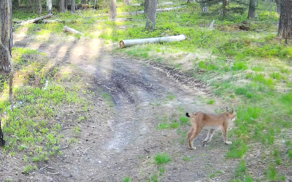 В этот раз удалось записать голоса рыси в конце весны - кадры сделаны 16 мая. Вблизи фотоловушки, отметили в заповеднике, живет одинокий самец рыси и самка с двумя малышами.