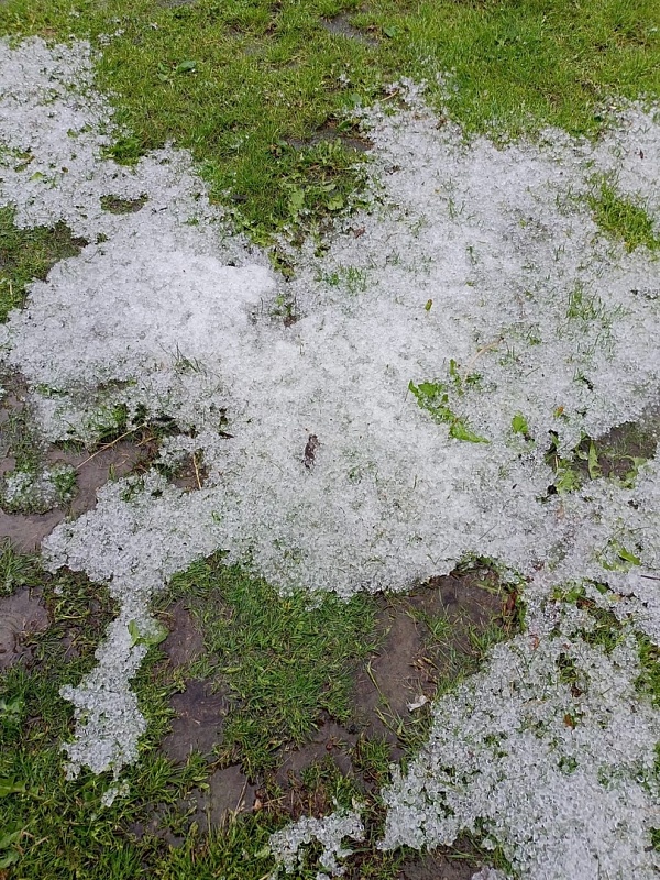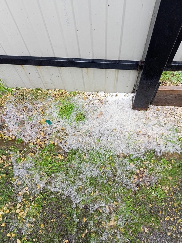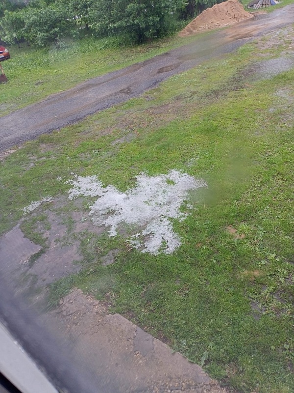 Фото градин разместила администрация района на официальной странице во ВКонтакте. Судя по всему, град был достаточно продолжительным - местами скопления градин напоминают небольшие сугробы. Но обычно летний град быстро тает.
