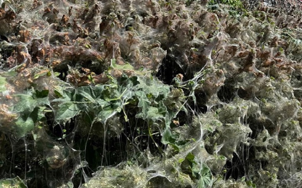 В некоторых районах города были замечены коконы паутины, практически полностью покрывающие кусты. Как сообщили специалисты ЦЗЛ, под защитой паутины кормятся гусеницы горностаевой моли. В зависимости от предпочитаемых растений она бывает яблоневая, ивовая, черемуховая и др.