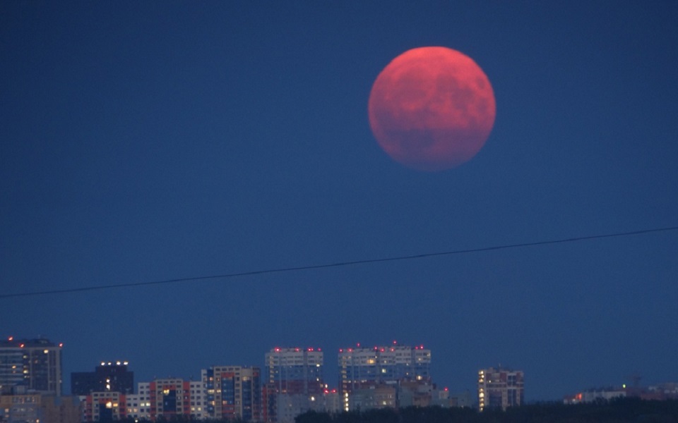 Клубничная Луна восходит над Рязанью.
