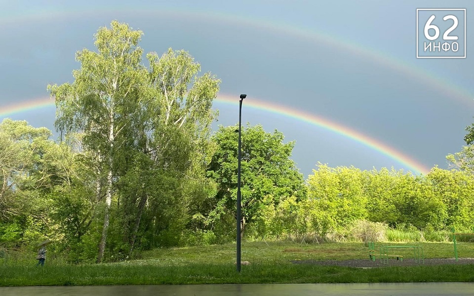 После дождя, прошедшего в Рязанской области днем в среду, 25 июня, над регионом появилась яркая и четко видная двойная радуга.