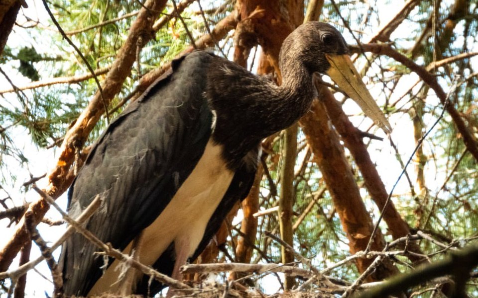 Птенцы уже почти достигли размера взрослых птиц и приобрели полноценный черный окрас. Вскоре они покинут гнездо.