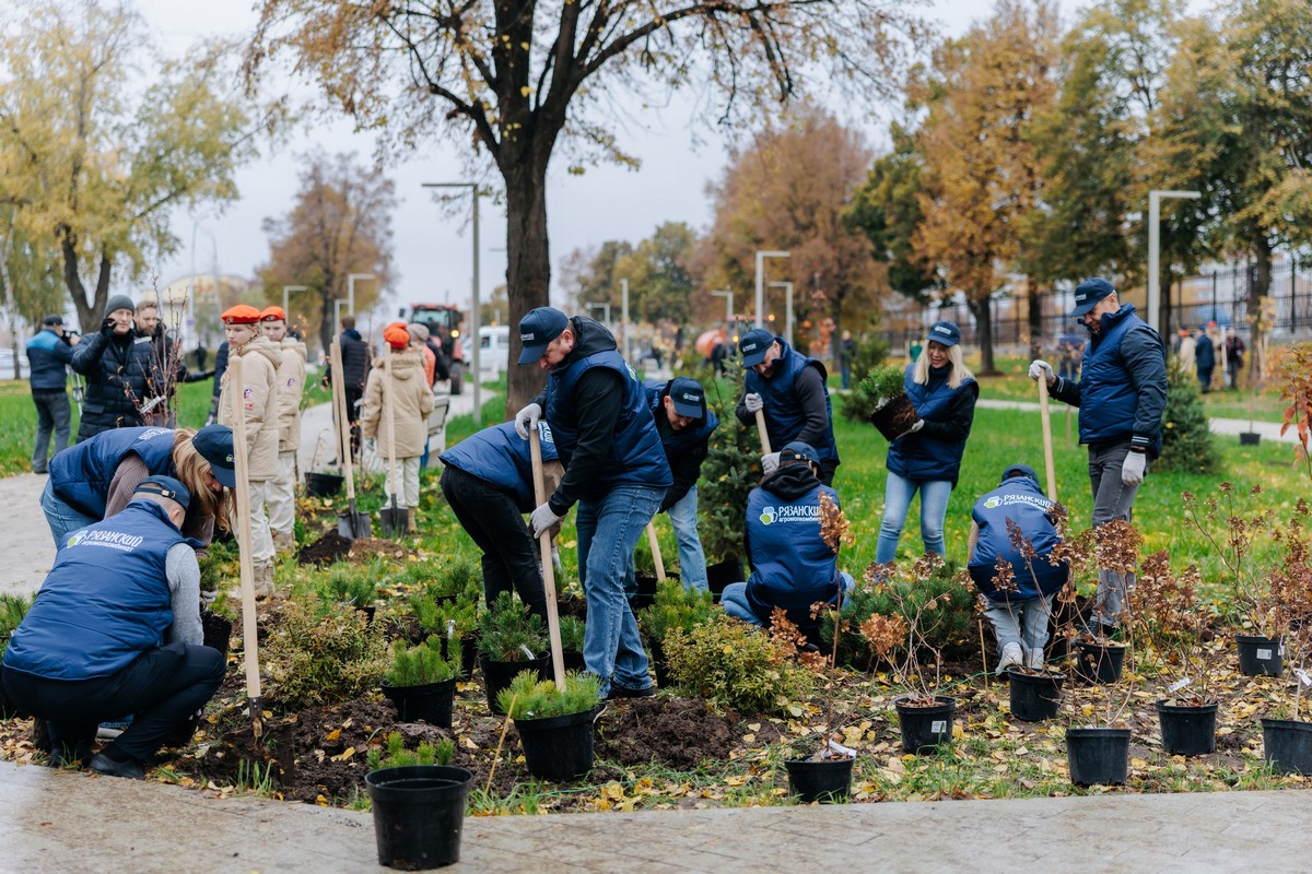 На территории сквера, где установлена стела в честь присвоения городу почетного звания, высадили рябины, липы, декоративные яблони и кустарники. Возле вокзала «Рязань-2» также оформили клумбу из 200 можжевельников.