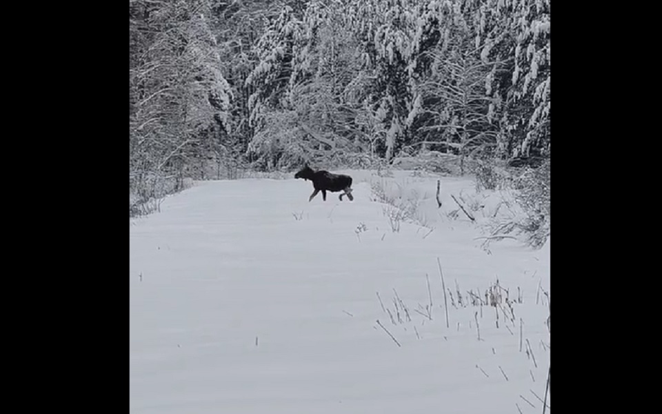 На кадрах видно, как лось неспеша пробирается по глубокому снегу.