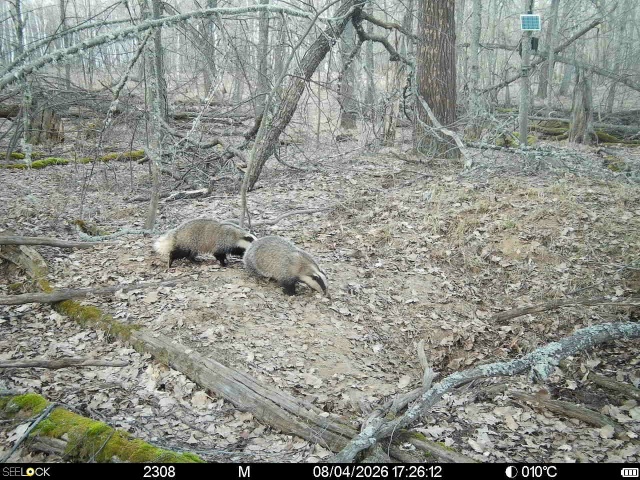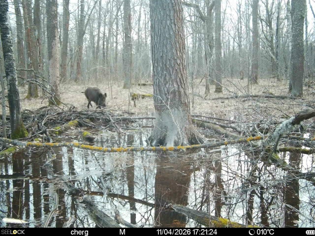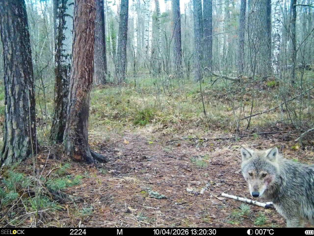 В объектив фотоловушки попали внимательный волк, суетливые барсуки, спешащие по своим делам норка и лиса, лось на водопое и кабан на выпасе.