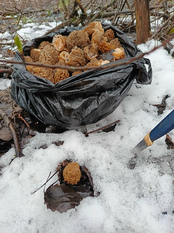 В Шиловском районе не испугавшиеся снега грибники собрали три полных пакета сморчков. Фото улова они выложили в группе «Грибы и Грибники Рязанской области».