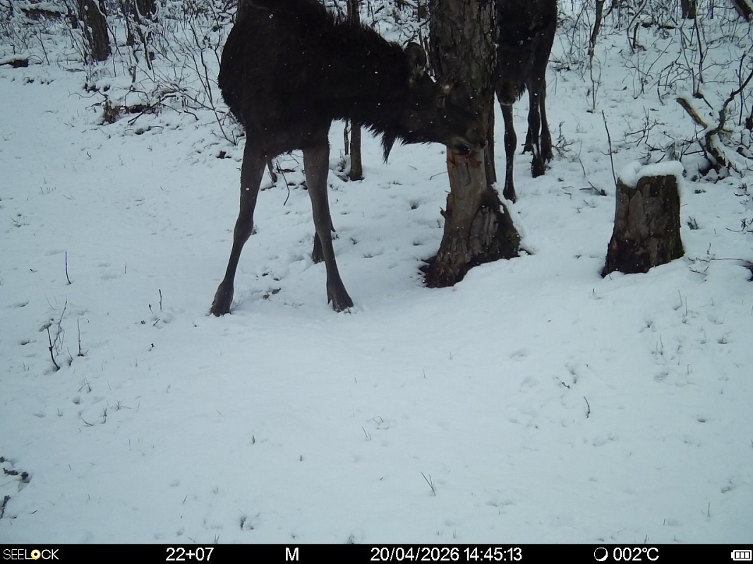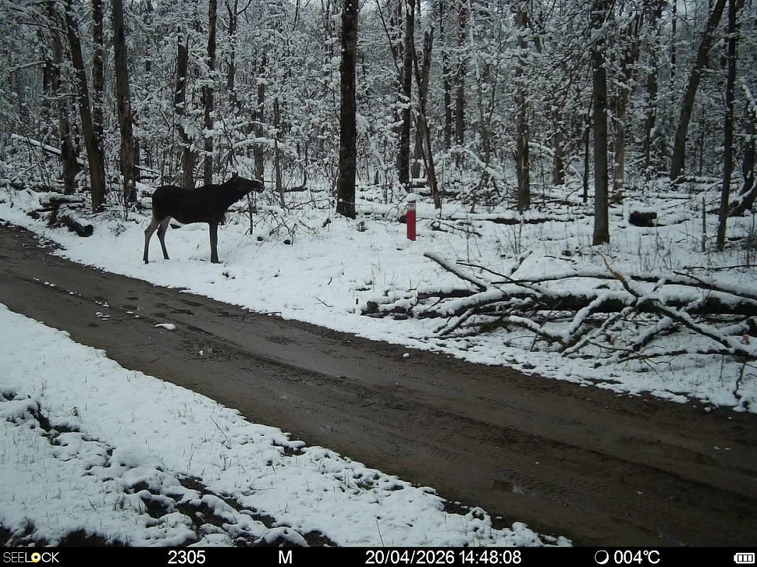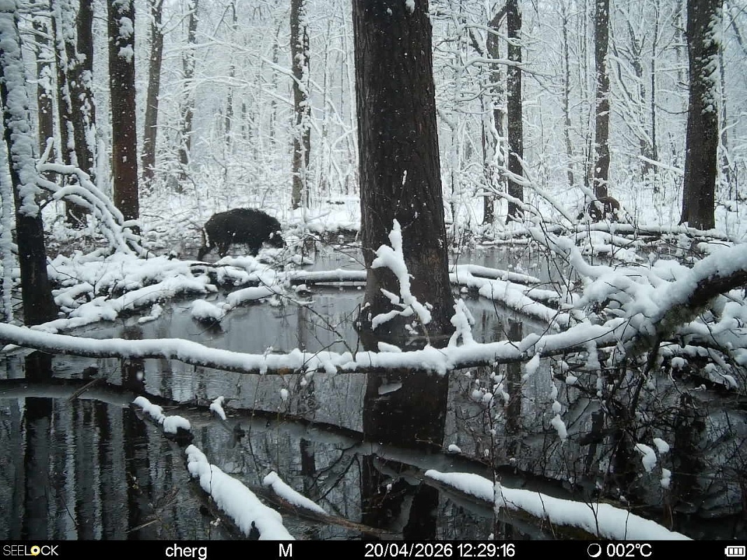 Окский заповедник опубликовал очередную подборку снимков фотоловушек. Они сделаны в последние дни – уже после начала апрельского снегопада.