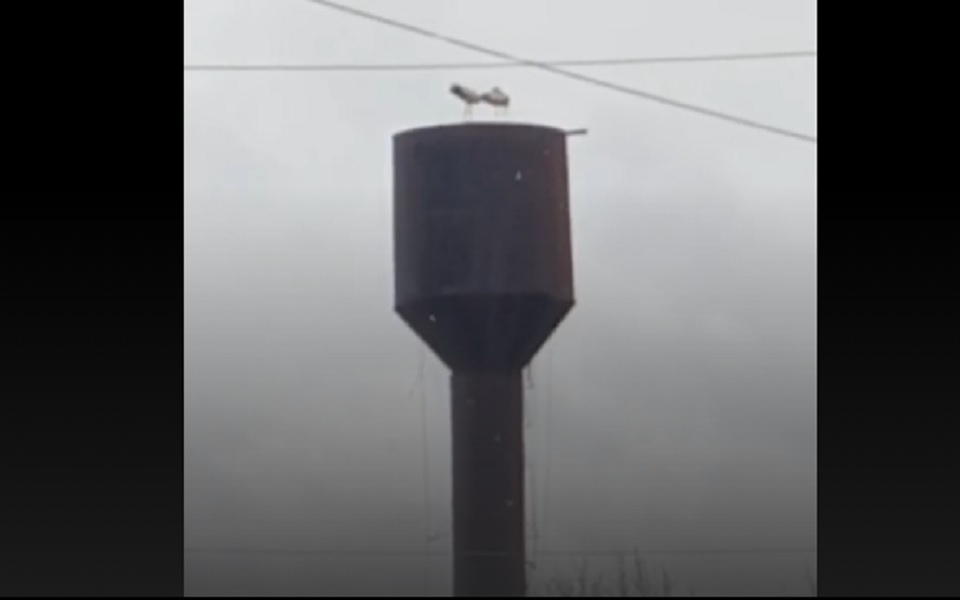 Недавно на водонапорной башне в поселке Сасовский поселились два аиста.