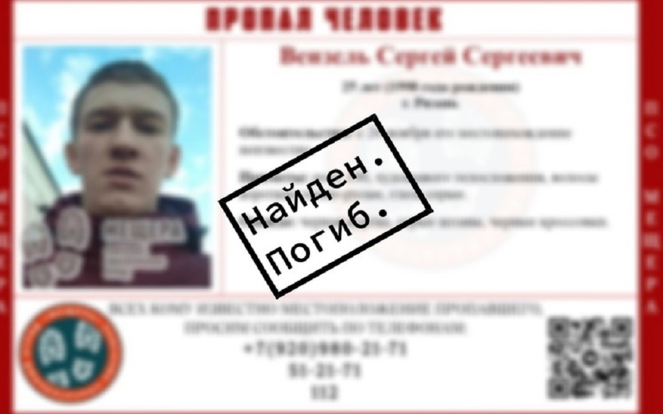 Пропавший в Рязани 26 ноября молодой мужчина погиб. Пост появился в паблике ПСО "Мещера" во вторник, 28 ноября.