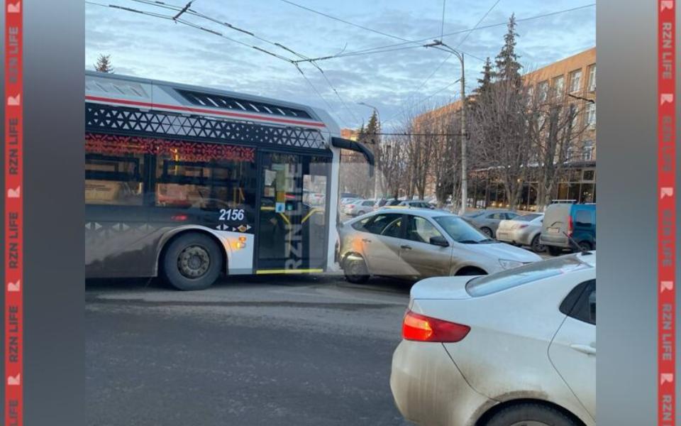 В центре Рязани столкнулись новый троллейбус и легковушка. Об этом сообщили в телеграм-канале RZN_Life.