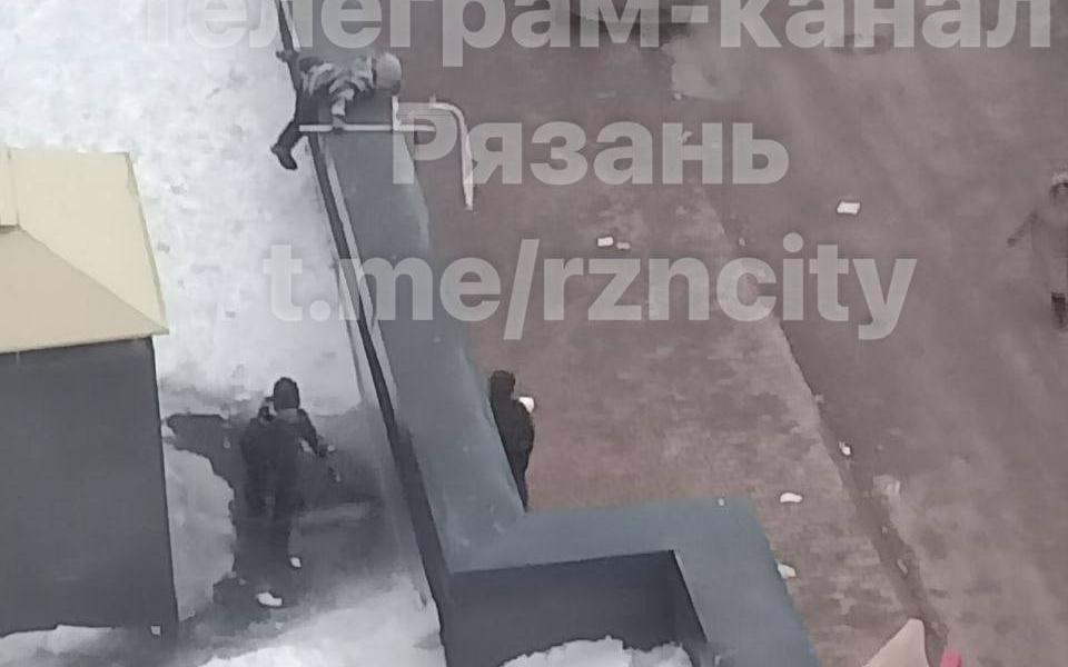 На крыше на улице Интернациональной в Рязани заметили школьников, которые бросали лёд на прохожих. Жалоба опубликована в паблике «Рязань».