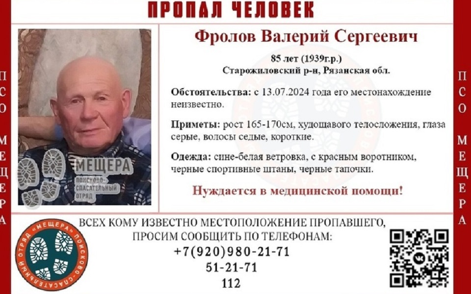 В ориентировке указано, что 85-летний мужчина ушел еще 13 июля.