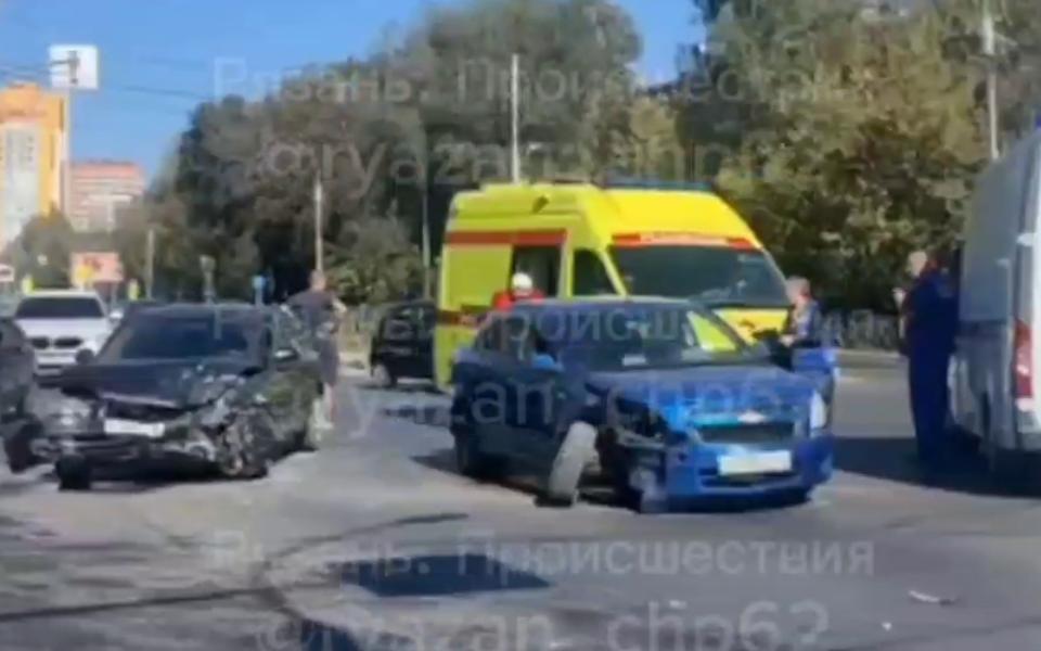 В Рязани на перекрёстке произошла авария с участием двух легковушек. Кадры с места происшествия опубликованы в соцсетях.