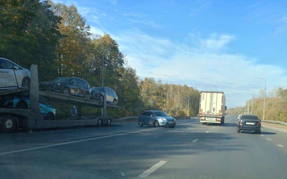 В понедельник, 14 октября, автовоз попал в аварию с участием легковушки. Фото с места происшествия опубликовано в паблике «Автоблог Рязани».