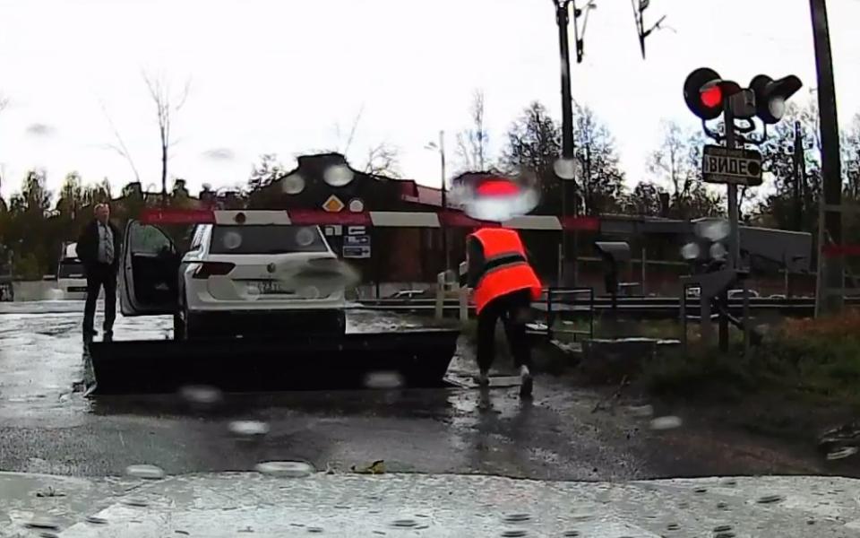 Водитель Volkswagen решил не дожидаться разрешительного сигнала светофора на железнодорожном переходе. Это ему дорого обошлось. Видео с места инцидента опубликовано в телеграм-канале RU_CHP.