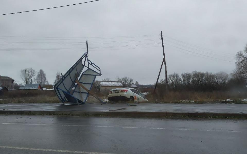В субботу, 16 ноября, водитель на каршеринге снёс остановку общественного транспорта. Фото с места инцидента опубликовано в паблике «Типичное Рыбное».
