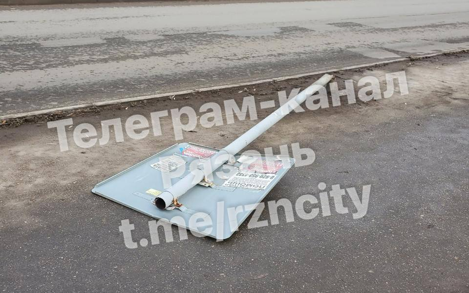 По словам автора публикации дорожный знак упал из-за «сильного порыва ветра» и на ребёнка, который проходил мимо. Рязанские службы призвали к ответу.