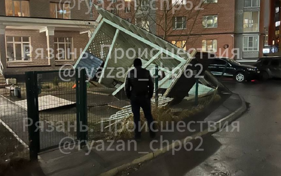 В Рязани ураганный ветер разрушил веранду в детском саду.