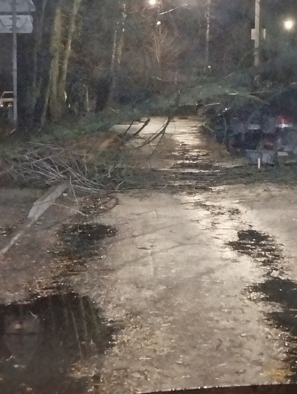 Кадрами делятся в соцсетях горожане. Есть сообщения о поваленных деревьях, во многих местах снесло ограждения их металлического профиля.