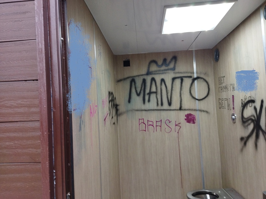 Внутри дело обстоит не лучше. Среди многочисленных надписей, сделанных вандалами, выделяются свастики - символ фашистов и нацистов. Демонстрация подобных знаков недопустима в нашей стране, где практически в каждой семье деды и прадеды воевали с нацистской Германией - и одержали Победу в Великой Отечественной войн. Она стоила миллионов жизней - и тех, кто рисует такие знаки в наше время, когда участники спецоперации вновь героически сражаются на фронте со сторонниками нацистской идеологии, нужно наказывать по всей строгости закона.