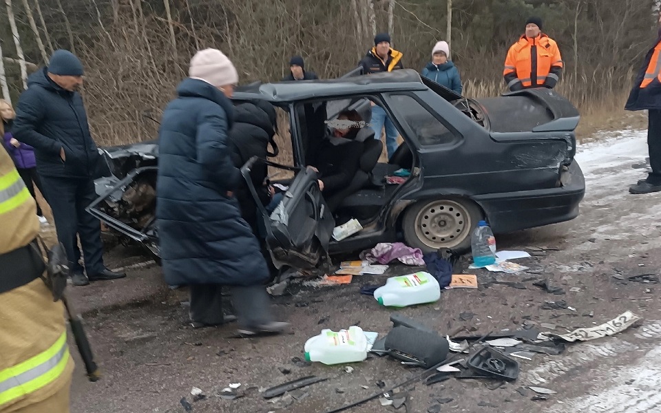 Отечественную легковушку буквально разнесло. Пострадала как минимум женщина-пассажирка.
