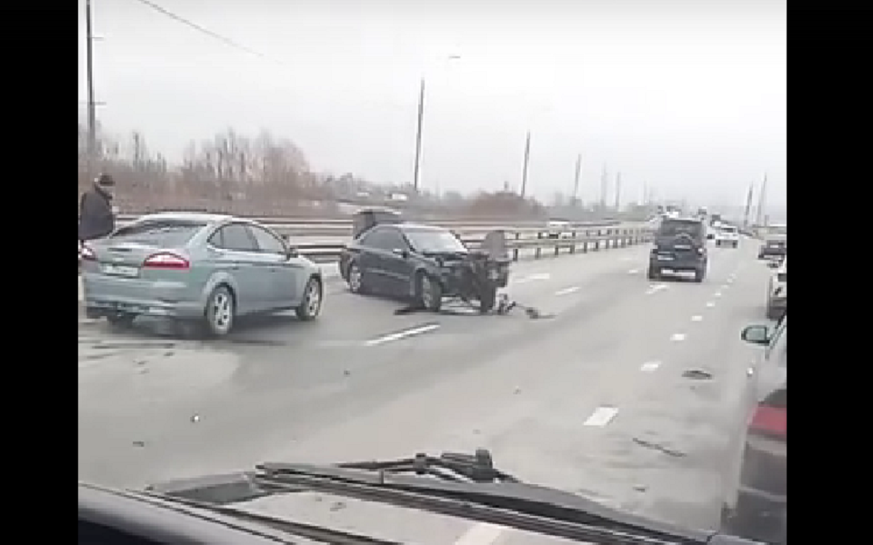 Оба автомобиля серьезно повреждены, один из них развернуло поперек полосы и ударило о разделительное ограждение. У него искорежен капот.