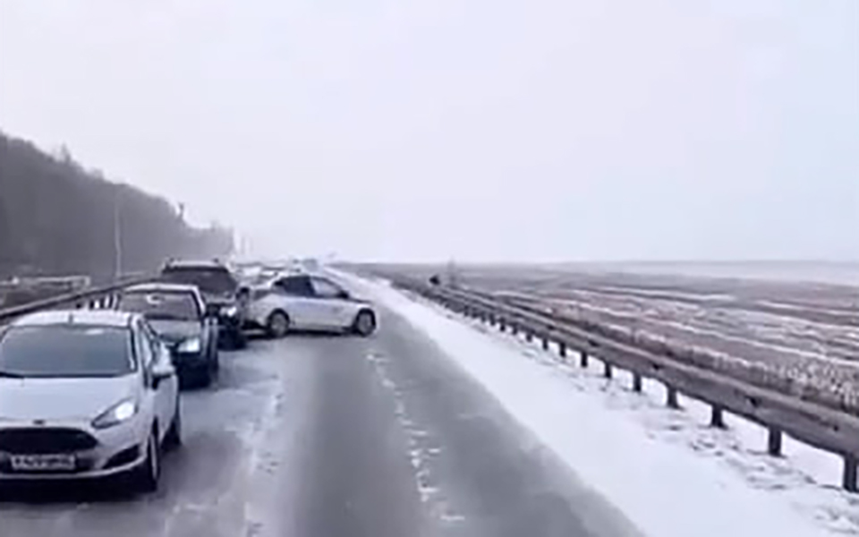 Недалеко от места массового ДТП произошло ещё одно с машиной ДПС. Об этом сообщает YA62 со ссылкой на очевидцев.