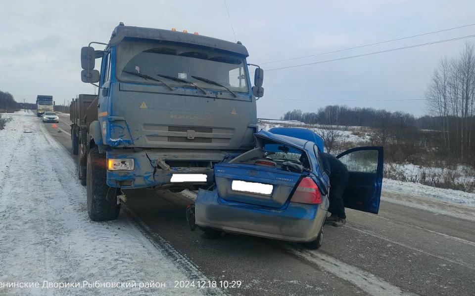Авария произошла в 10:10 на 1-ом километре дороги «Рыбное — Пальные — Пионерский — Большое Жоково». 39-летний житель Ивановской области на Chevrolet Klas врезался в КАМАЗ под управлением 58-летнего рязанца.