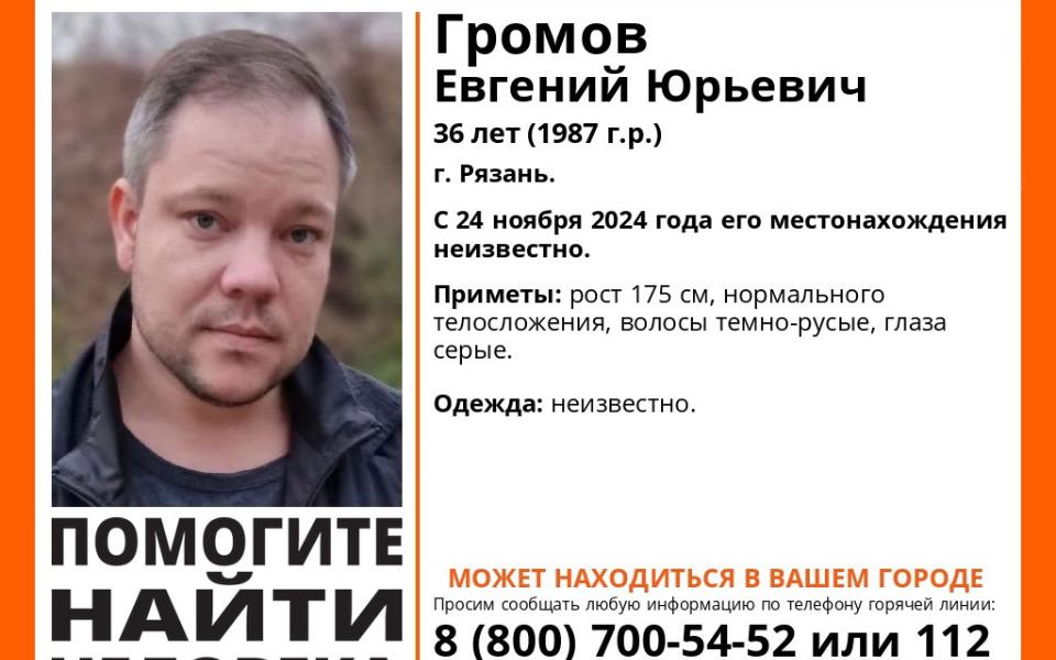 Поисково-спасительный отряд «ЛизаАлерт» объявил о начале поиска Евгения Громова, пропавшего 24 ноября. Подробности опубликованы в соцсетях добровольцев.