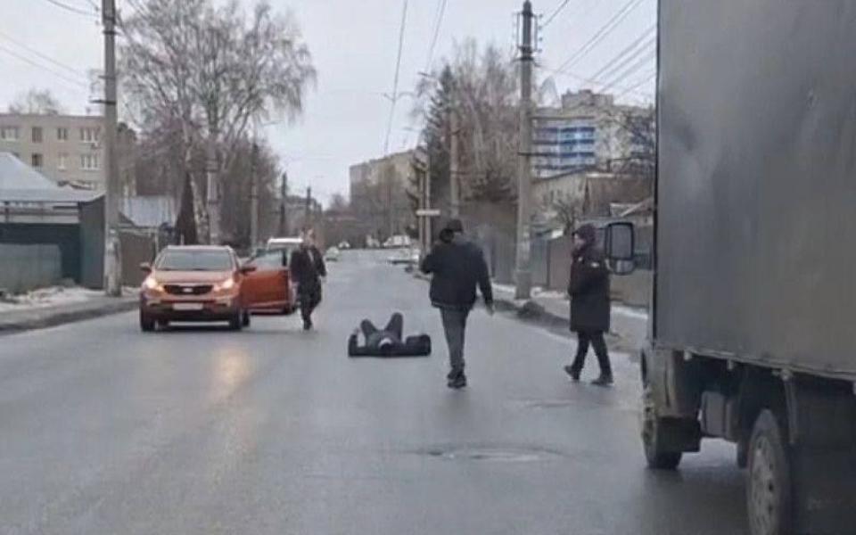 Рязанцы заметили мужчину, который лёг на дорогу в Мервине. Кадры опубликовал телеграм-канал «ЧП и ДТП Рязани».
