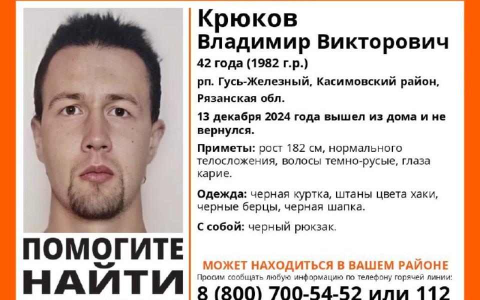 Молодой человек вышел из дома 13 декабря 2024 года в рабочем посёлке Гусь-Железный и пропал без вести.
