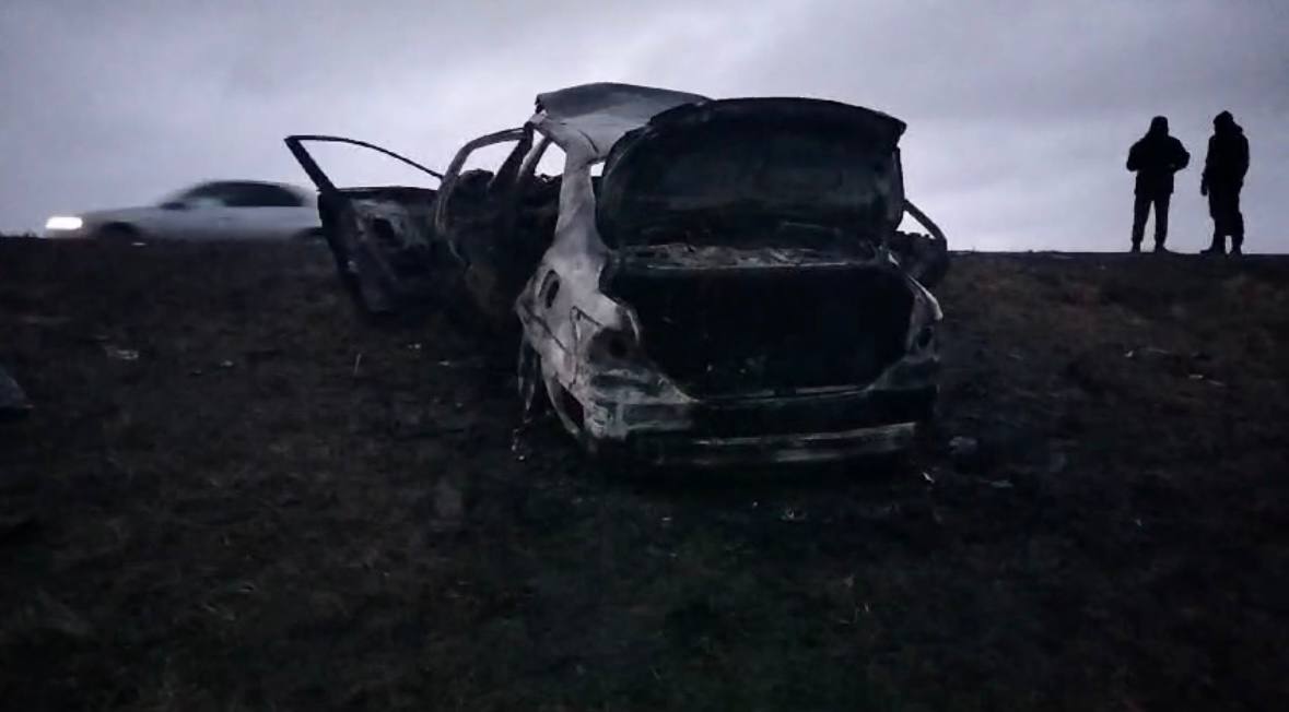 Сила удара была такой, что Toyota Camry буквально превратило в груду мятого металла. Машины выбросило с дороги в поле, судя по фото, легковушка загорелась.