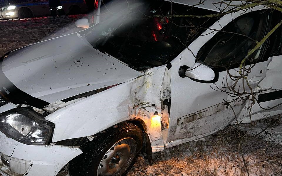 LADA Largus попала в аварию поздней ночью. Около 3:00 водитель не справился с управлением, и автомобиль оказался в кювете.