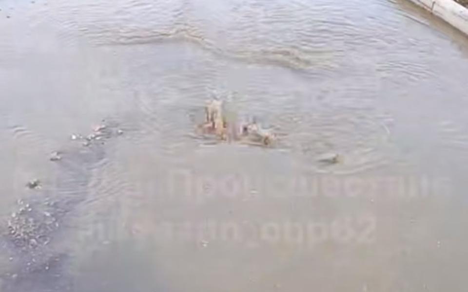 Инцидент произошёл у памятника Евпатию Коловрату. На кадрах видно, как из земли бьёт ключом канализационная вода. Часть парка оказалась подтоплена.