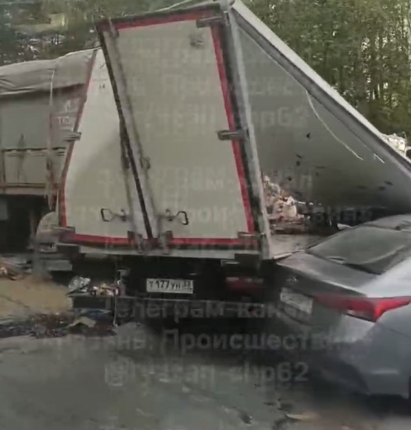В воскресенье, 27 апреля, в Рязанской области произошла массовая авария с участием двух большегрузов. Видео с места автокатастрофы опубликовано в телеграм-канале «Рязань. Происшествия».