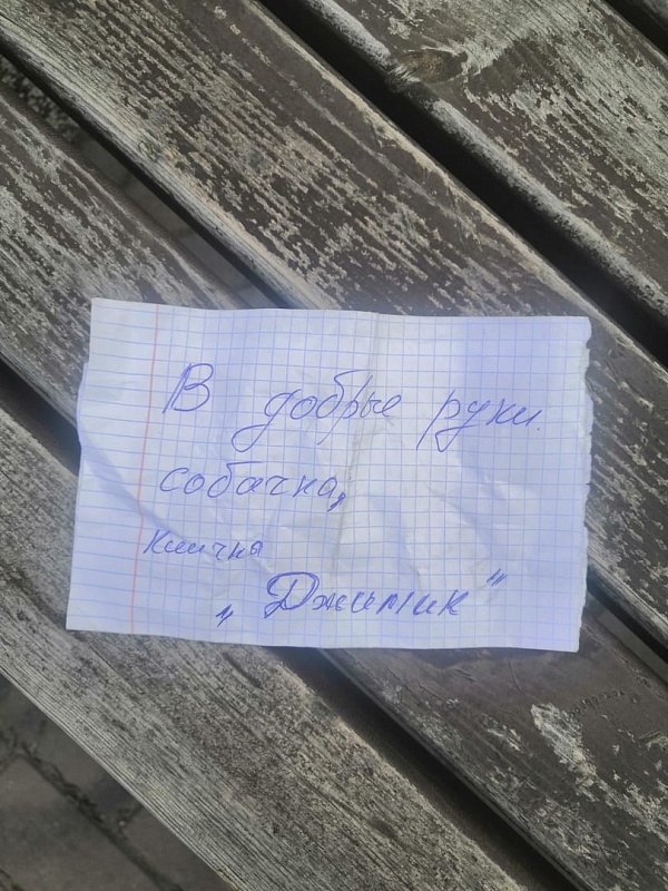 Пост опубликовал один из пабликов с новостями Рыбновского района. Сообщается, что животное прежние хозяева бросили, оставив записку.