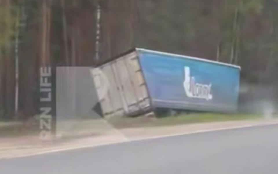 Во вторник, 20 мая, автовладельцы заметили съехавшую с дороги фуру. Фото опубликовано в телеграм-канале Rzn_Life.